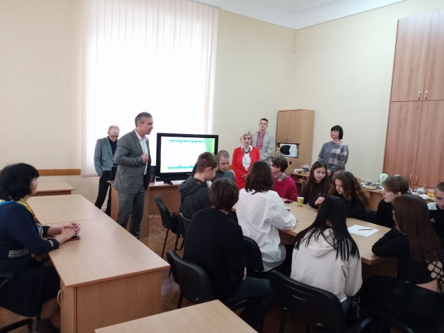 Кафедра іноземної філології і перекладу вже тривалий час підтримує звязки з опорним закладом освіти «Білогородський ліцей № 1» Бучанського району Київської області. Цього разу викладачі й студенти кафедри чекали гостей зі школи, підготувавши цікаву програму. Насамперед, учні випускового класу у супроводі Хамець Людмили Михайлівни і Слободяник Інни Станіславівни відвідали «Центр синхронного перекладу» і поспілкувались щодо особливостей навчання за освітніми програмами «Англійська мова та друга іноземна» й «Німецька мова та друга іноземна», можливостей стажування за кордоном. Дехто зі школярів вже був обізнаний із інформацією що участі студентів у програмі академічної мобільності Erasmus+ і попросив додатково розповісти про неї.