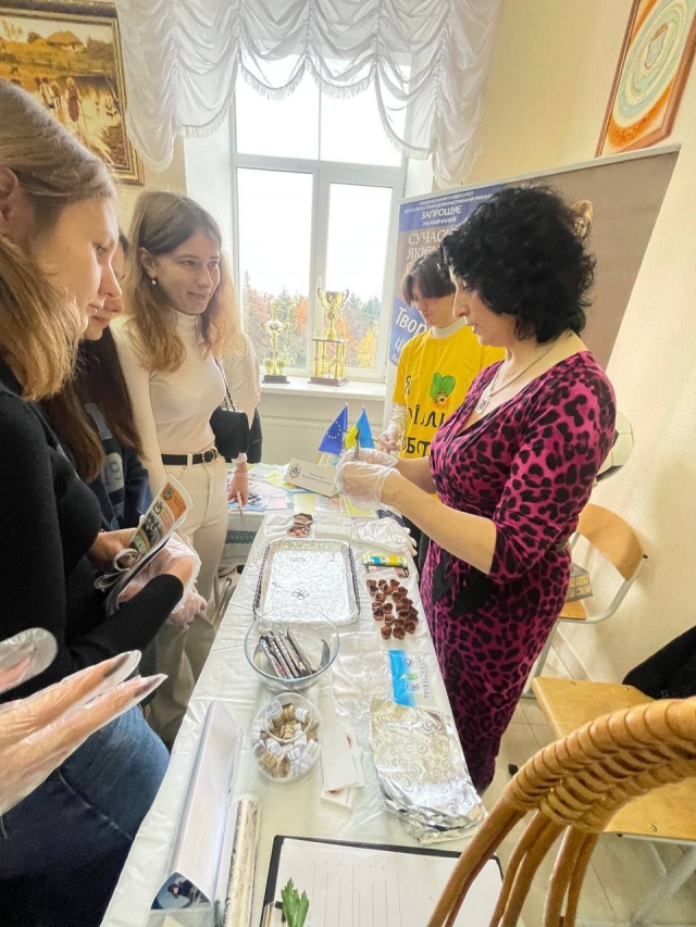 Гості Дня відкритих дверей мали можливість візуалізувати особистісні проблеми під керівництвом професорки Інни Осадченко за допомогою «Шоколадотерапії», з використанням елементів різних терапій: мануальної; художньої; кольоро-, запахо-, звуко-, смакотерапії тощо з поточним аналізом смислозначення довільних шоколадних зображень. Для того, щоб життя було «солодшим» Інні Іванівна усім бажаючим пропонувала індивідуальне, парне, групове виготовлення цукерок «Бажання», із зернинкою добра, любові та впевненості у собі. Це саме ті професійні якості, які в першу чергу потрібні фахівцям із соціальної роботи. Тож розвиваємо їх уже в абітурієнтів!