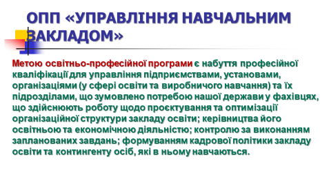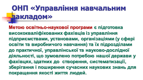 Наталія Ігорівна розкрила директорам шкіл, їх заступникам та вчителям особливості вступу 2024 р. та основні відмінності навчання на освітньо-професійній та освітньо-науковій програмах «Управління навчальним закладом» спеціальності 073 «Менеджмент» галузі знань 07 «Управління та адміністрування».