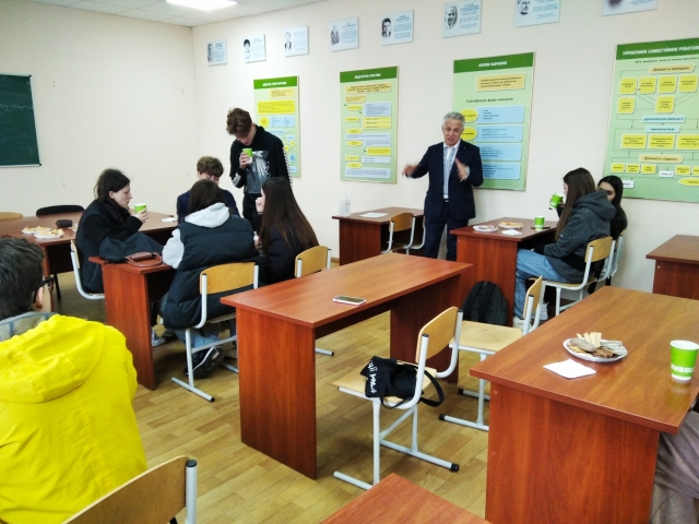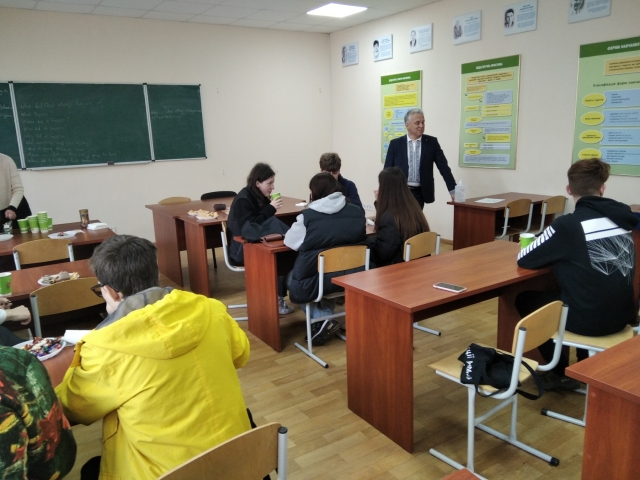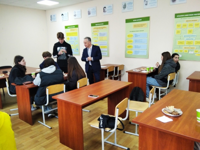 У процесі гостинної зустрічі з учнями та вчителями Еколого-природничого ліцею № 116 та Гімназії № 179 міста Києва завідувач кафедри управління та освітніх технологій Сергій Кубіцький познайомив їх з науково-педагогічними працівниками, що забезпечують викладання навчальних дисциплін освітньо-професійних програм «Управління навчальним закладом» та «Управління персоналом» спеціальності 073 «Менеджмент» галузі знань 07 «Управління та адміністрування».