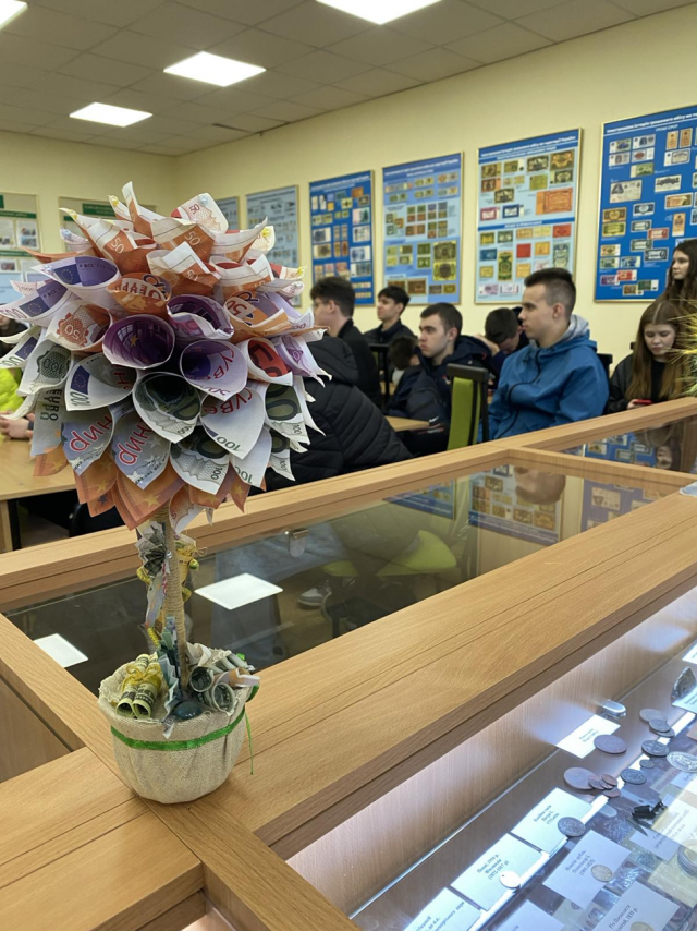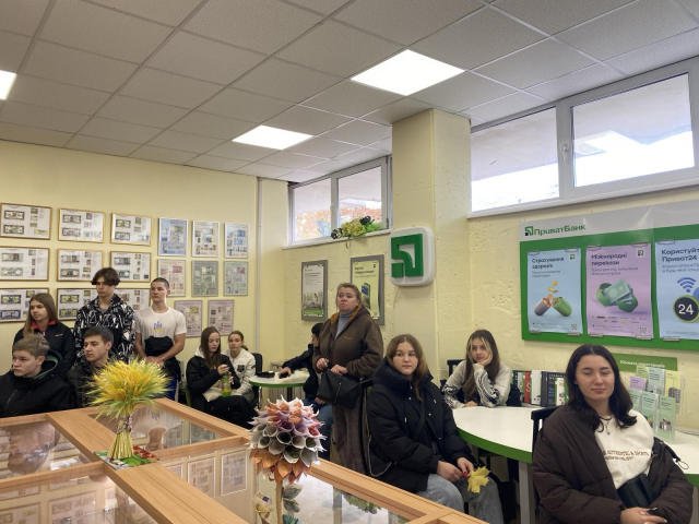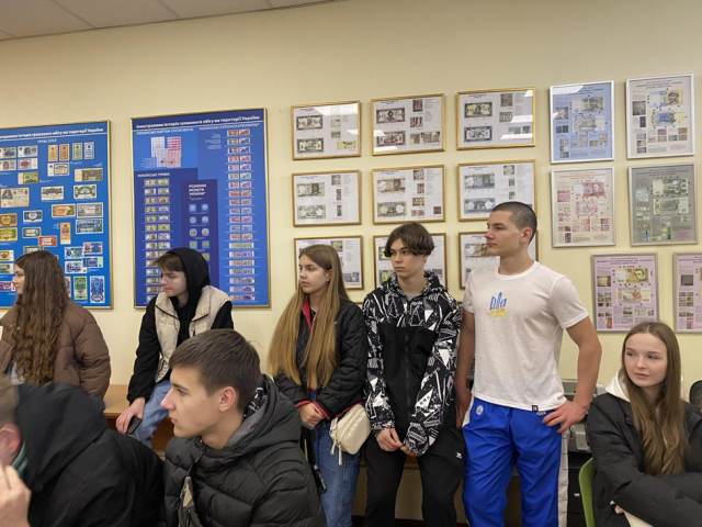 Цікаву екскурсію та ознайомлення з експонатами Музею провела завідувач кафедри банківської справи та страхування кандидат економічних наук, доцент Костюк Вікторія Анатоліївна. Її розповідь про історію українських грошей, а також грошові знаки інших країн викликала значний інтерес учнів.