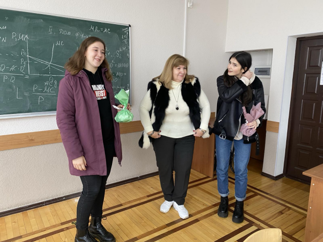 А далі гості – потенційні вступники завітали на кафедру економіки – без перебільшення серце й мозок економічного факультету. Завідувач кафедри професор Байдала Вікторія Вікторівна, доценти Степасюк Людмила Михайлівна і Чередніченко Олена Олександрівна, Балан Олександр Дмитрович і старший викладач кафедри Коваленко Лариса Вікторівна та інші викладачі приязно зустріли гостей, провели екскурсію кабінетами й навчальними аудиторіями кафедри. А після цього майбутніх абітурієнтів чекала захоплююча Економічна «казкова» вікторина, за допомогою якої всі поринули у світ економіки, найбільш активні учасники отримали призи, а запашний чай чекав на всіх.