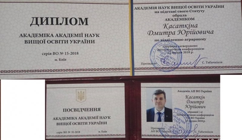 На цьому зібранні одним з тих хто отримав звання академіка АН ВО України став доцент кафедр Дмитро Касаткін, диплом і подсвідчення якому вручив особисто Президент академії, доктор медичних наук, професор, академік Табачніков Станіслав Ісакович.