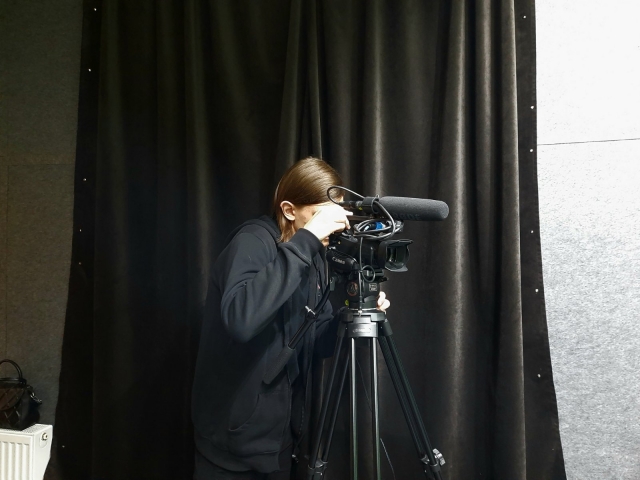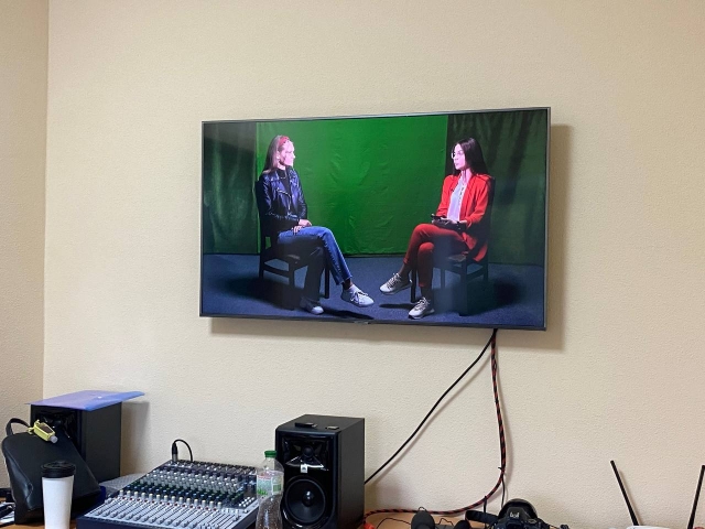 Решта студентів змогли попрактикувати роботу за кадром: налаштувати світло, камери, звук. Все це відбувалось під пильним наглядом фахівців, які допомагати студентам зробити якісне інтерв’ю.