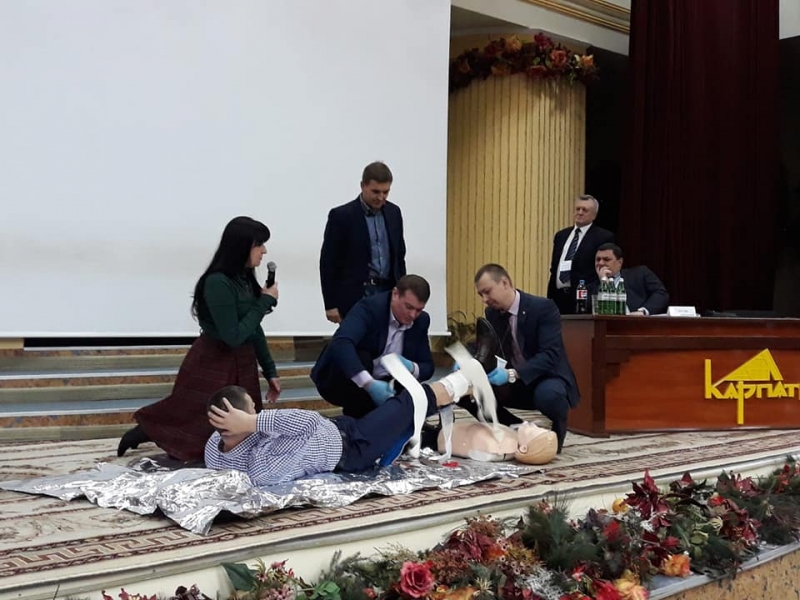Від НУБіП України запросили доцента кафедри охорони праці та інженерії середовища Білько Тамару Олександрівну для виступу з доповіддю «Практичні рекомендації щодо надання домедичної допомоги» та проведення тренінгу «Домедична допомога при нещасних випадках на виробництві, аптечка домедичної допомоги». В Україні середній показник смертності від надзвичайних ситуацій (НС) становить 130-135 осіб на 100 тис. населення, що перевищує відповідні показники в країнах Європи в 20 разів. При цьому близько 24% постраждалих помирають у лікарнях, а 76% - на догоспітальному етапі. За аналогічними показником у розвинутих державах світу 72% постраждалих помирає саме в лікарні, і тільки 28% на догоспітальному етапі. За оцінкою медичних фахівців, в Україні із 100 осіб, які померли на догоспітальному етапі, 20% летальних випадків пов'язані з отриманням травм, несумісних з життям, а інші 80% випадків – з недостатньою системою організації надання медичної допомоги постраждалим безпосередньо в зоні НВ та неефективністю здійснення заходів з медичної евакуації постраждалих до лікувальних закладів, тому надзвичайно актуальною є проблема своєчасності надання невідкладної домедичної допомоги працівникам на виробництві, які постраждали внаслідок НВ. Першочерговим завданням для вирішення зазначеної проблеми є забезпечення якомога раннього початку надання домедичної допомоги постраждалим. Сучасною медичною наукою визначено концепцію так званої «золотої години», астрономічна година (60 хв.) з моменту отримання травми або ушкодження, протягом якого має бути надано максимальний обсяг медичної допомоги постраждалому з метою порятунку його життя та здоров’я.