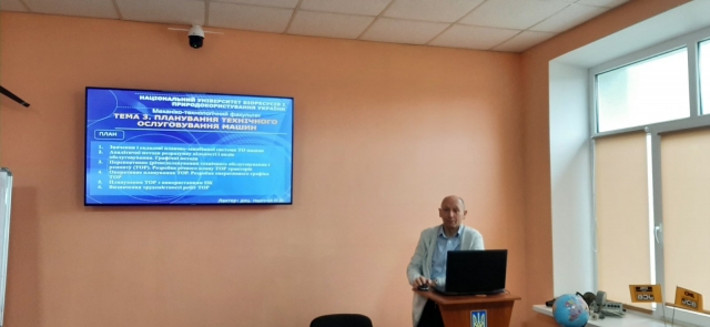 12 лютого 2024 року згідно встановленого графіку було проведено відкриту лекцію на тему "Планування технічного обслуговування машин" з навчальної дисципліни "Технічний сервіс машин" студентам 3 курсу скороченого терміну підготовки здобувачів освіти освітньо-професійної програми "Агроінженерія" першого бакалаврського освітнього рівня доцентом кафедри технічного сервісу та інженерного менеджменту імені М. П. Момотенка Олександром НАДТОЧІЄМ.