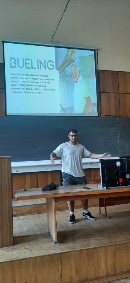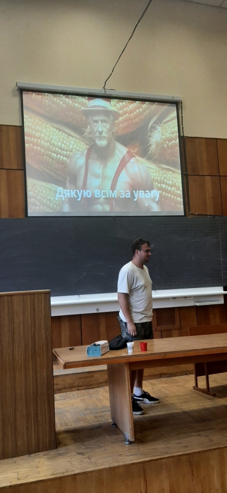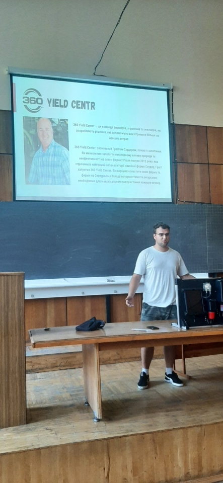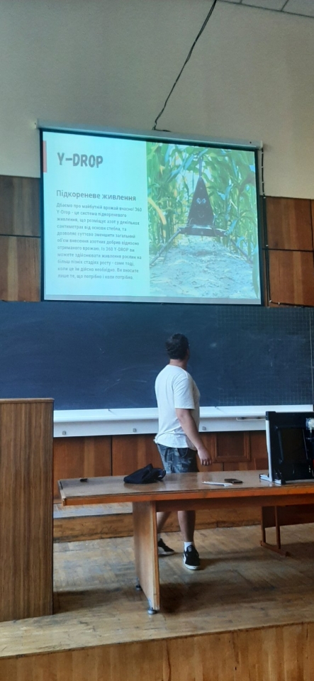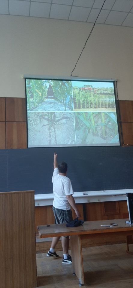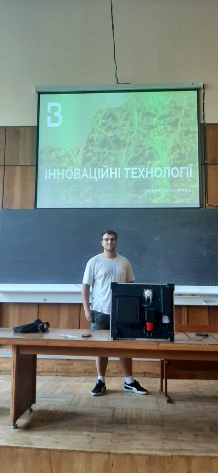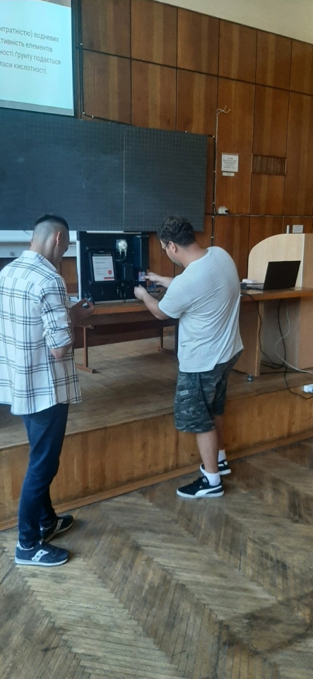 28 вересня 2023 року доцент кафедри технічного сервісу та інженерного менеджменту імені М. П. Момотенка Олена ДЕВ'ЯТКО під час проведення лекційного заняття з навчальної дисципліни "Інноваційні інженерні технології" запропонувала студенту академічної групи АІ2302м механіко-технологічного факультету ОПП "Агроінженерія" Данилові ГОРЯЄВУ виконати презентаційний тематичний показ "Аналіз стану грунту для вирощування кукурудзи за показниками рН та нітратів NO3-N" з наглядною складовою аналізу зразка грунту, взятого з квіткової клумби біля навчального корпусу №11 НУБіП України.