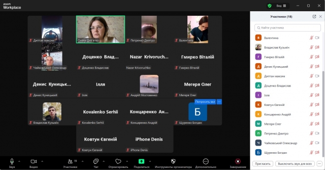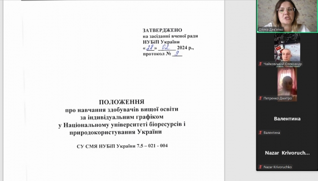 20 серпня 2024 року доцент кафедри технічного сервісу та інженерного менеджменту імені М. П. Момотенка Олена Дев'ятко в онлайн-режимі провела кураторську годину з академічною групою АІ2201 механіко-технологічного факультету НУБіП України. В ході обговорення акцент був на нагальні питання новацій в Університеті та участь студентів в заходах Університету в серпні 2024 року.