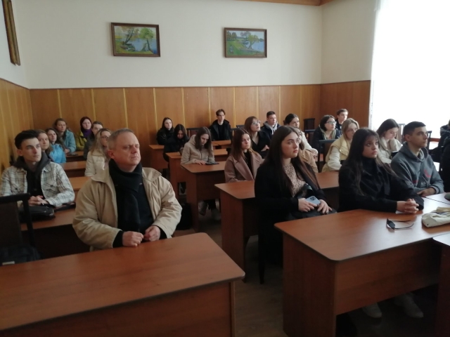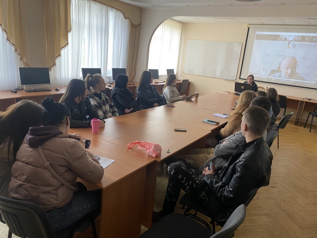 Аудиторія 15 к. 1 звісно не змогла вмістити всіх бажаючих взяти, так би мовити, аудиторне онлайн-спілкування із поважним гостем, тому трансляцію виступу було організовано й з інших аудиторій гуманітарно-педагогічного та інших факультетів. Приємно, що до зустрічі, крім власне міжнародників, долучились наприклад студенти спеціальності «готельно-ресторанний бізнес», які зокрема поцікавились думкою п. Посла щодо культурної співпраці України та Австрії в умовах війни та наскільки популярними є в Австрії ресторації та інші заклади харчування з українською національною кухнею.