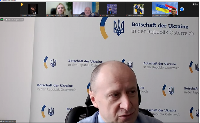 11 квітня о 12.00 за київським часом за ініціативи керівництва кафедри міжнародних відносин і суспільних наук, Посольства України у Республіці Австрія та активу науково-навчальних гуртків «Інформація і політика» й «Дипломатія і геополітика» в рамках кафедрального проекту «Університети міжнародника» відбулась зустріч у змішаному он- офлайн-форматі із нашим другом, відомим українським дипломатом, Надзвичайним і Повноважним Послом, Надзвичайним і Повноважним Послом України у Австрійській Республіці Химинцем В. В.