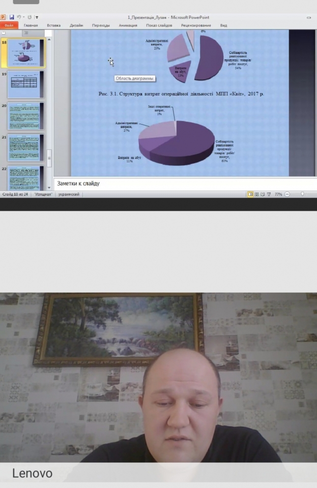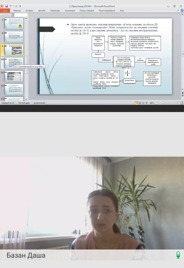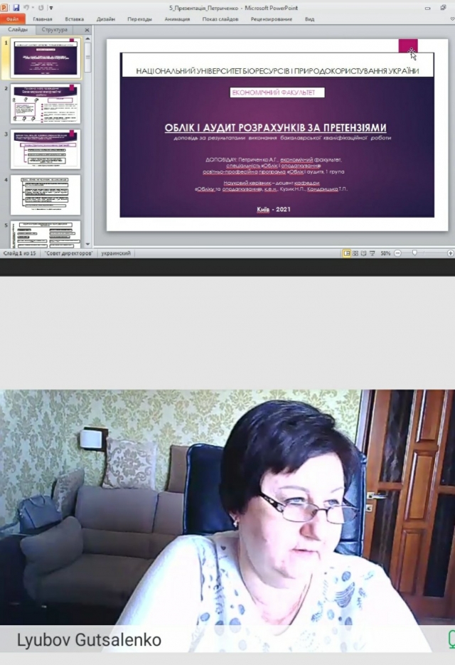 Обрані теми були цікаві та різноманітні, присвячені актуальним питанням бухгалтерського обліку, аудиту та аналізу. Результати роботи візуалізувались таблицями, графіками, діаграмами, що давало можливість повніше розкривати зміст положень, винесених на захист. Захист бакалаврської роботи супроводжувався постерними презентаціями. З метою повнішого розкриття сутності бакалаврської кваліфікаційної роботи усім бакалаврам-випускникам ставилось декілька запитань, на які комісія отримувала ґрунтовні відповіді.