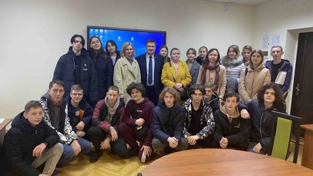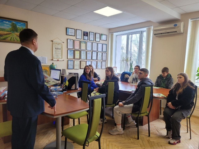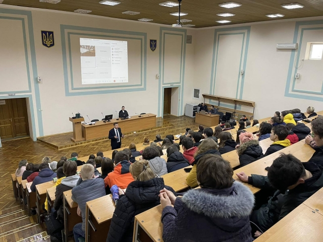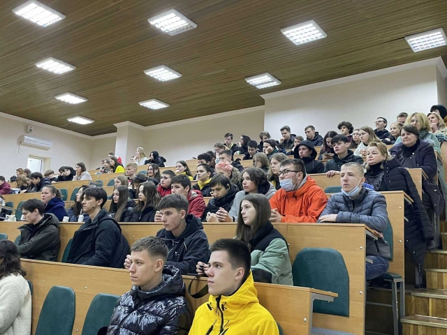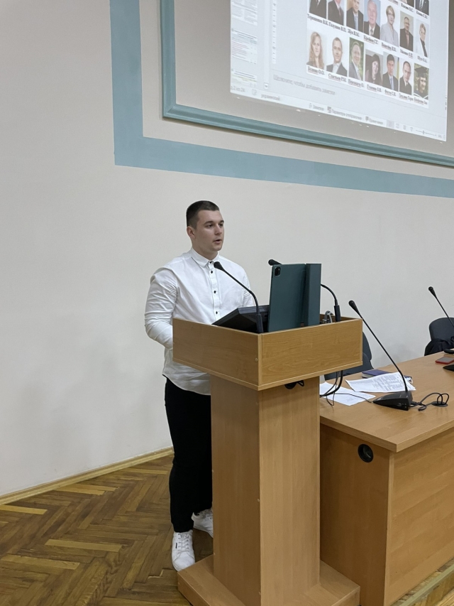 Далі зустріч продовжив лідер студентської організації економічного факультету Владислав Горбаченко. Він розповів яким чином відбувається навчання на факультеті, заходи, особливості навчання та проживання в гуртожитку. Але основний акцент у свої розповіді Владислав зробив на напрямках роботи студентської організації, проведенні дозвілля студентами, та як вони працюють в умовах воєнного стану.