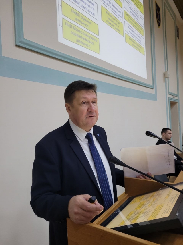 У цікавій та змістовній доповіді Анатолій Дмитрович ознайомив із історією факультету, його славетними випускниками, переліком спеціальностей, які можна здобути в нашому закладі освіти. Він окреслив місце фахівців економічного профілю в сучасному динамічному світі, кон’юнктурність даних спеціальностей та відмітив особливості навчання за освітніми програмами, які є в межах спеціальностей. Також декан, наголосив на традиціях та досвіді підготовки висококваліфікованих спеціалістів для різних галузей економіки країни. Навчаючись на економічному факультеті майбутні абітурієнти мають змогу отримати не просто фах, а ґрунтовну професійну підготовку та широкі можливості для реалізації творчих і наукових талантів.