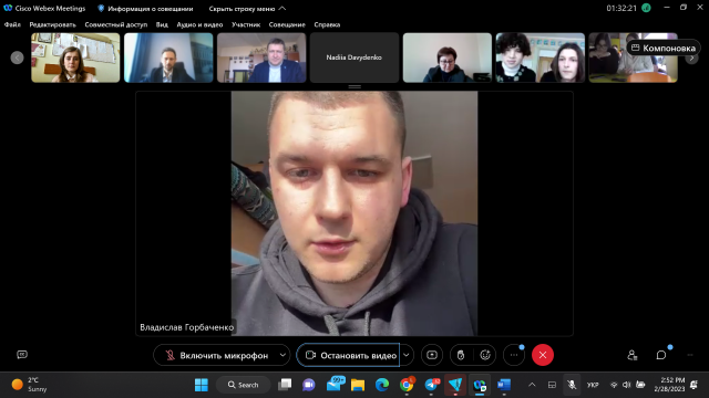 Далі зустріч продовжив лідер студентської організації економічного факультету Владислав Горбаченко. Він розповів яким чином відбувається навчання на факультеті, заходи, особливості навчання та проживання в гуртожитку. Але основний акцент у свої розповіді Владислав зробив на напрямках роботи студентської організації, проведенні дозвілля студентами, та як вони працюють в умовах воєнного стану.    Підсумковим етапом заходу була сесія питань/відповідей. Майбутніх абітурієнтів цікавили вартість навчання на спеціальностях факультету, який бал ЗНО має бути для вступу на навчання за дерзамовленням, чи є можливість і за яких умов можна перейти з контрактної форми навчання на бюджетну, чи можна одночасно навчатися за двома спеціальностями, особливості навчання за системою подвійних дипломів. Окрім того були і запитання стосовно основних відмінностей освітніх програм в межах однієї спеціальності. Також майбутніх вступників цікавила можливість безпосереднього отримання інформації про факультет від студентів через соціальні мережі і канали зв’язку, посилання на які надав голова студентської організації.    Загалом проведений захід викликав зацікавленість у молоді і вселяє надію, що присутні випускники загальноосвітніх навчальних закладів та коледжів поповнять ряди студентства нашого економічного факультету.
