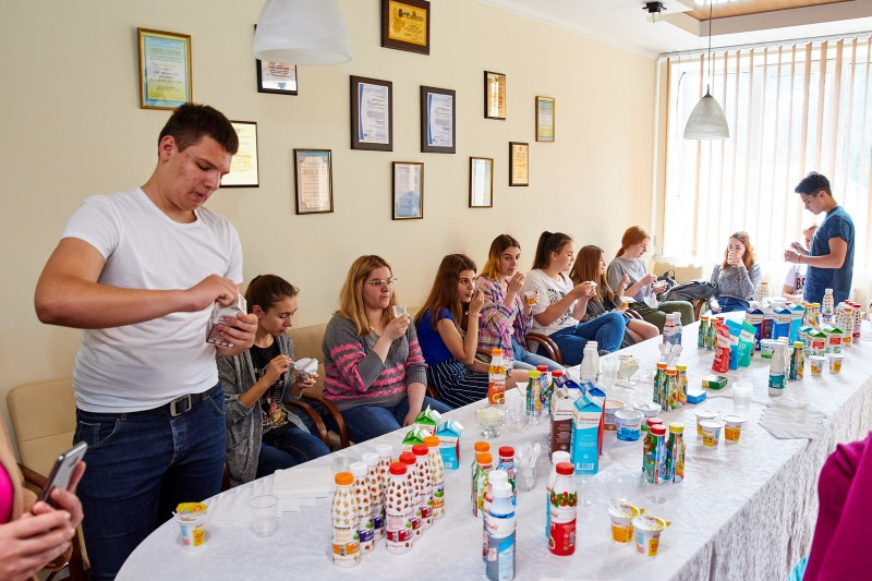 На завершення екскурсії студенти взяли участь у дегустації продукції підприємства, під час якої мали змогу поставити запитання головним спеціалістам підприємства. Першокурсники також познайомились із PR-менеджером групи компаній «Молочний альянс» Світланою Хіноцькою, яка розповіла про особливості роботи відділу маркетингу та відповіла на питання студентів щодо нюансів роботи у сфері комунікацій.