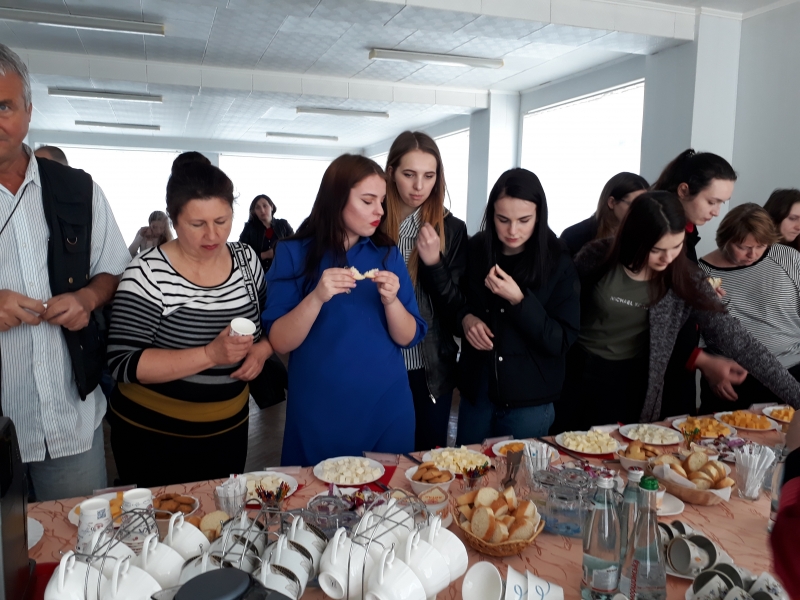 На закінчення екскурсії студенти взяли участь у дегустації продукції підприємства, під час якої мали змогу поставити запитання директору та головним спеціалістам підприємства. Першокурсники познайомились із PR-менеджером групи компаній «Молочний альянс» Хіноцькою Світланою Василівною, яка розповіла про особливості роботи відділу маркетингу. Зокрема, студентів зацікавила нова концепція просування торгової марки «Пирятин» і особливості проведення рекламної кампанії.