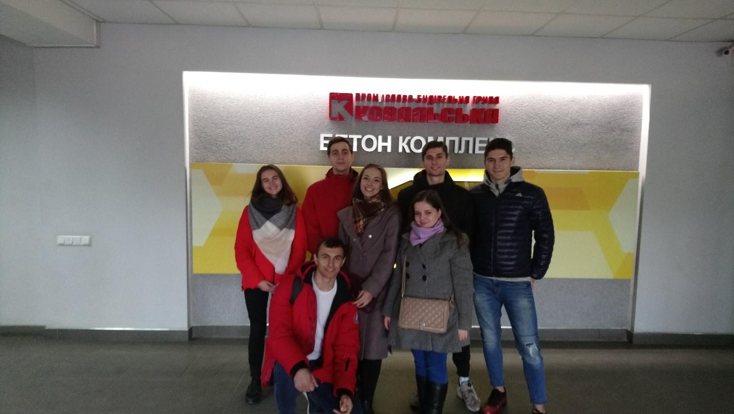 Члени гуртка "Сучасна архітектура" разом із студентами кафедри будівництва відвідали сучасний завод, що займається виготовленням залізобетонних виробів. Під час проходження екскурсії студенти мали можливість ознайомитися з лабораторією і технологією контролю якості продукції, яку проводять, умовами зберігання готової продукції та постачанням необхідних матеріалів на завод.