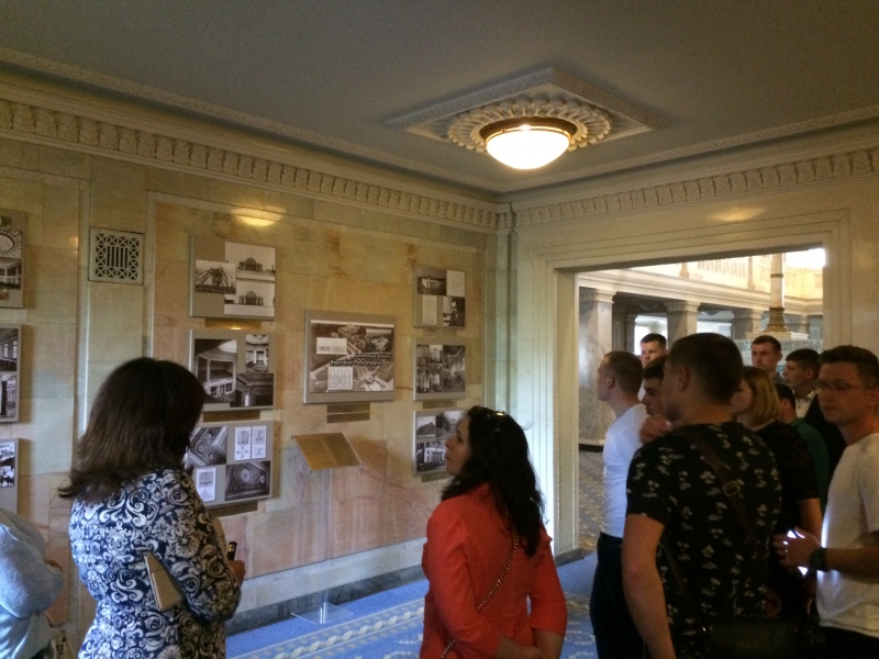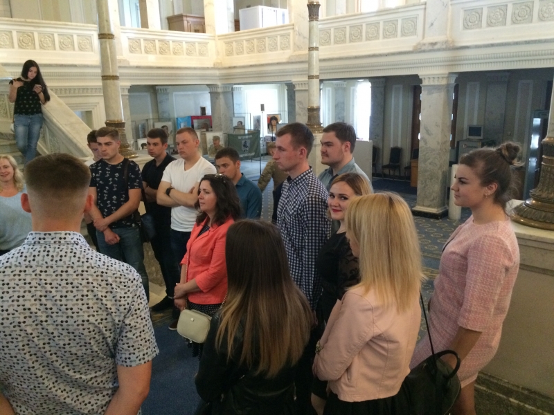 Залежно від пори року повітря або нагрівалося, або охолоджувалося і уявіть собі, навіть ароматизувалося. Тепер в ВР є й сучасна система кондиціювання. Студентів зацікавила картина «Державотворення», яка знаходиться на другому поверсі Парламенту, тому що на ній зображено історичний момент, а саме коли 24 серпня 1991 року 350 депутатів проголосували за незалежність України, до сесійної зали занесли прапор України й накрили ним трибуну. Вразила студентів і кришталева люстра, що висить у сесійній залі Парламенту, яка важить 4 тонни, в порівнянні так це стільки ж важить чотири автомобілі. Екскурсія до Верховної Ради студентам дуже сподобалася, багато вражень та цікавої інформації і звичайно велика кількість фотографій на пам'ять. А потім в гарному настрої у декого з молоді промайнула думка, що після закінчення НУБіП України можливо хтось із студентів нашого факультету стане депутатом, а чому б і ні, ми віремо в них і в те, що вони змінять наше майбутнє!!!