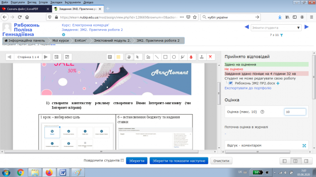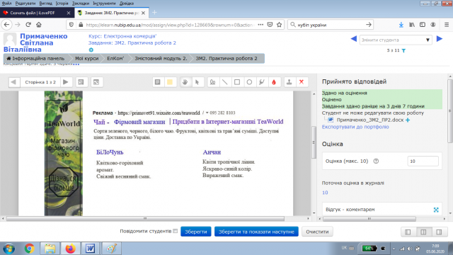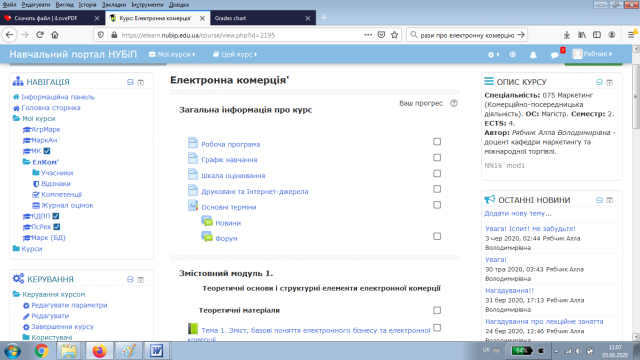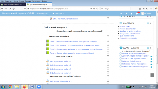 Іспит з дисципліни «Електронна комерція» розпочався в запланований час та у відповідності із затвердженим розкладом проведення заліково-екзаменаційної сесії на факультеті аграрного менеджменту. Дистанційна форма здачі екзамену відбувалася через навчальний портал НУБіП України на платформі Еlearn.
