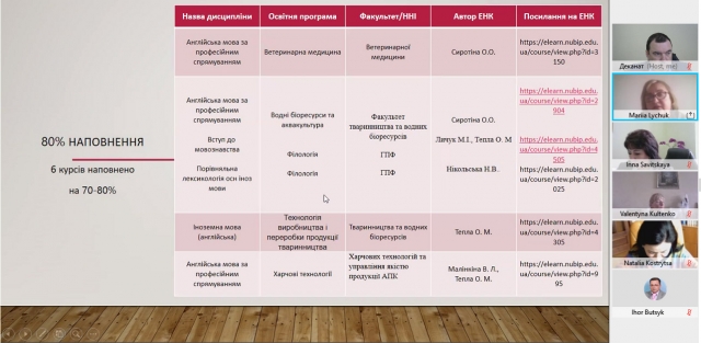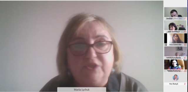 Згідно затвердженого графіку свій звіт про забезпеченість навчальних дисциплін електронними навчальними курсами представила завідувач кафедри романо-германських мов і перекладу Марія Личук. Грунтовний звіт Марії Іванівни все ж залишив низку питань, які озвучив заступник декана Ярослав Рудик та отримав на них відповідь.