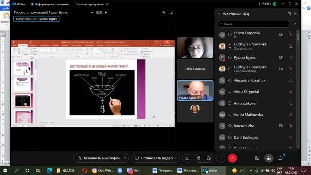 Завідувач кафедри маркетингу та міжнародної торгівлі професор Буряк Руслан Іванович більш детально розповів про спеціальність маркетолога та спеціалізації «Маркетинг на ринку товарів та послуг» і «Digital маркетинг» за якими кафедра здійснює підготовку. Було наголошено про можливість всебічного розвитку студентства, яке зосереджується на розвитку наукової та міжнародної діяльності, високу професійну підготовку та можливість подальшого працевлаштування, яке для випускників забезпечується завдяки співпраці з провідними маркетинговими компаніями, передовими агрокомпаніями та агрохолдингами, рітейлерами, рекламними агентствами та іншими компаніями.