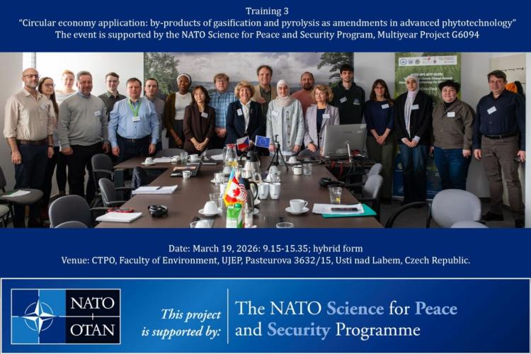 19 березня 2026 року в Університеті Яна Евангеліста Пуркінє (м. Усті-над-Лабем, Чехія) відбувся міжнародний тренінг «Застосування принципів циркулярної економіки: побічні продукти газифікації та піролізу як добавки у сучасних фітотехнологіях»