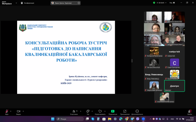 Здобувачі вищої освіти випускного курсу ОП «Туризм» спеціальності «Туризм та рекреація» ОС «Бакалавр» наближаються до завершального етапу свого навчання. Саме тому в рамках консультаційної зустрічі детально обговорено ключові аспекти написання бакалаврської кваліфікаційної роботи, здачі атестаційного екзамену та важливість дотримання принципів академічної доброчесності.
