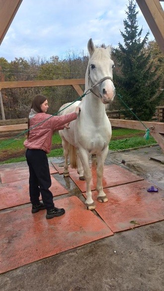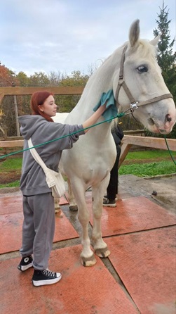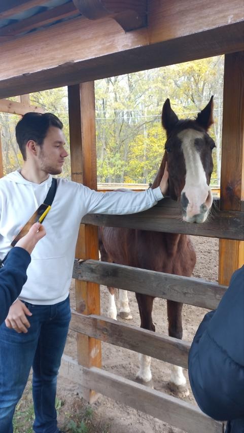 Відбулося ще одне цікаве нестандартне практичне заняття на базі навчально-науково-виробничої лабораторії конярства НУБіП України для наших першокурсників спеціальності «Соціальна робота». Метою заняття було сформувати у студентів навички іпотерапії, як одного з багатьох методів роботи кваліфікованого соціального робітника.