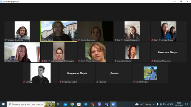Відповідно до наказу ректора №748 від 21.10.2022р. з понеділка 24 жовтня 2022 року студенти всіх курсів освітніх ступенів бакалавр і магістр економічного факультету перейшли на дистанційну форму навчання. Це викликано постійними терористичними обстрілами росії, руйнацією енергетичної інфраструктури і як наслідок віялових відключень світла. Повітряні тривоги, які тривають по декілька годин, не дають змоги повноцінно вести навчання. 25.19.2022 року відбулася онлайн-зустріч куратора 1 групи 1 курсу, к.е.н., доцента кафедри економіки Гуцул Тетяни Анатоліївни зі своєю студентською групою. Тетяна Анатоліївна наголосила, що під час онлайн-навчання в умовах воєнного часу, студенти і куратор групи повинні знаходитися на постійному зв’язку, переважно, за допомогою повідомлень у Telegram або Viber. Також звернула увагу студентів на те, що онлайн-навчання вимагає від кожного з них великої самоорганізації, сумлінного відвідування навчальних занять і щоб камери на заняттях, по можливості, були включені, закликала намагатися тримати свої гаджети зарядженими.