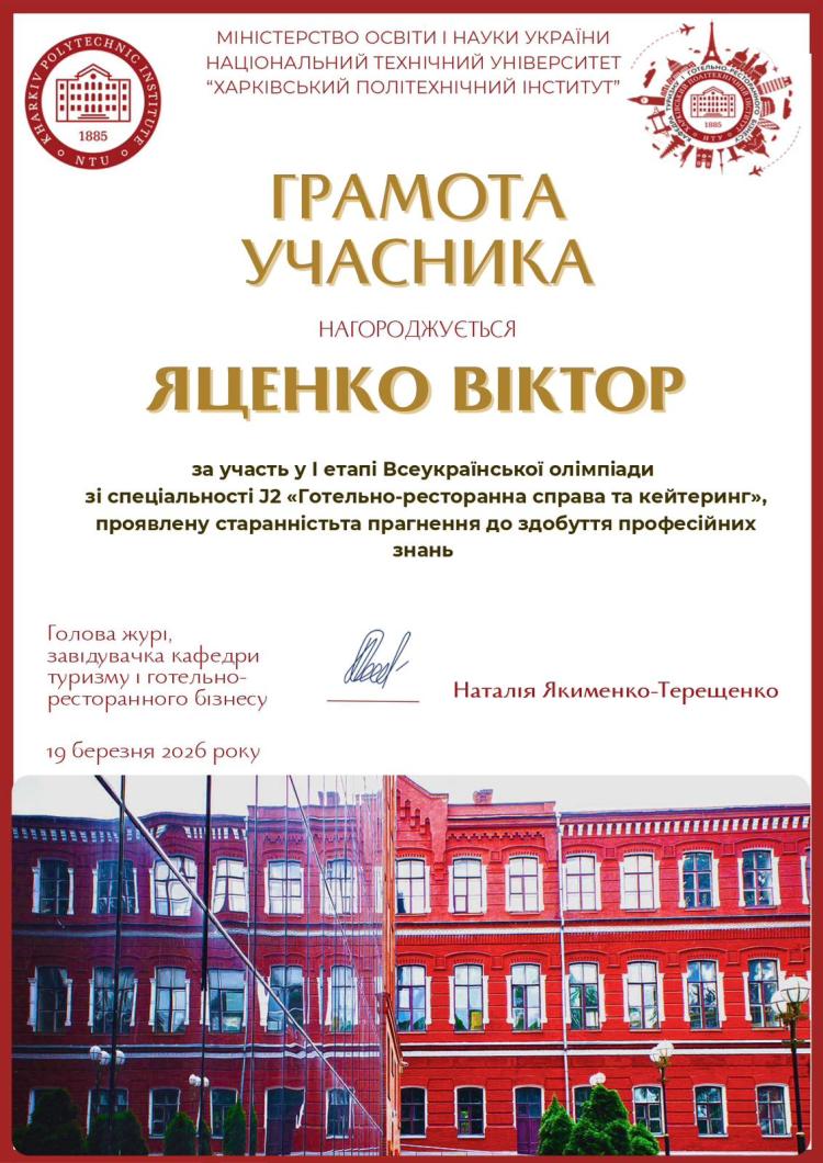 Окремо варто відзначити Віктора ЯЦЕКА, який був нагороджений грамотою за наполегливість і прагнення до професійного розвитку у спеціальності «Готельно-ресторанна справа та кейтеринг». Його підготовка здійснювалася під керівництвом д.е.н., професора Оксани МОРГУЛЕЦЬ. Досягнення студентів стали результатом системної роботи кафедри готельно-ресторанної справи та туризму, де поєднуються сучасні освітні підходи, наукова діяльність і практична підготовка. Активна участь у наукових гуртках сприяє формуванню конкурентоспроможних фахівців.