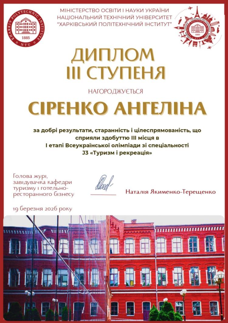 Гордість кафедри готельно-ресторанної справи та туризму: блискучі перемоги студентів на Всеукраїнській олімпіаді