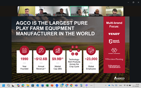 У своїй презентації спікер розкрив історію розвитку компанії, особливості її діяльності на міжнародному ринку та в Україні, підходи до організації роботи з дилерами та клієнтами. Компанія значну увагу приділяє ідентифікації потреб фермерів, для чого проводиться глибоке дослідження ринку, його сегментація та чітке визначення цільових груп покупців сільськогосподарської техніки. З цією метою реалізується підхід «Фермер перш за все (Farmer First)».