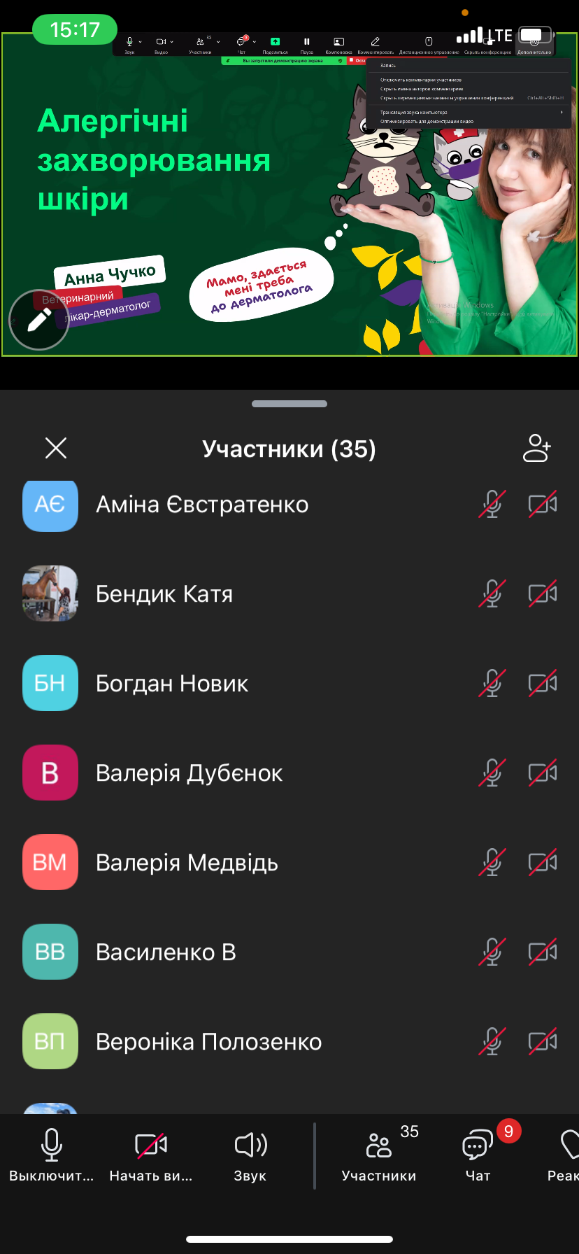 Факультет ветеринарної медицини НУБіП України провів гостьову онлайн-лекцію на тему «Алергічні захворювання шкіри собак та котів», яку прочитала Анна Чучко – практикуюча ветеринарна лікарка-дерматологиня з дев’ятирічним клінічним досвідом. Лекторка представляє ветеринарний госпіталь «Генезис» (м. Київ) та є членкинею Європейської спільноти ветеринарних дерматологів (ESVD) і Української ветеринарної дерматологічної спільноти (УВДТ). Анна, також, є авторкою освітніх курсів, наукових публікацій та активною доповідачкою багатьох професійних конференцій.