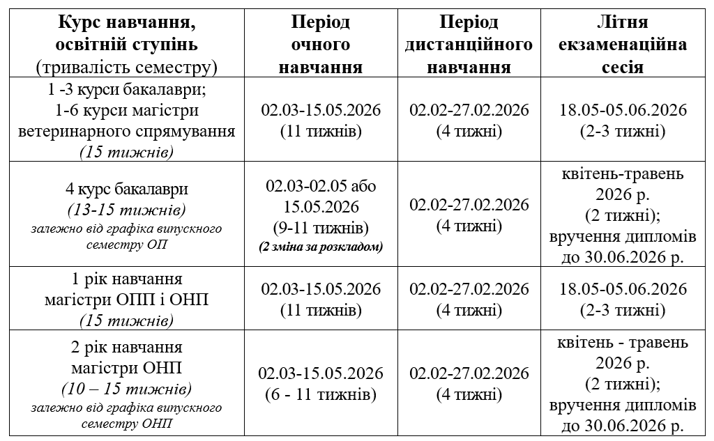 Графік освітнього процесу в НУБіП України на ІІ семестр