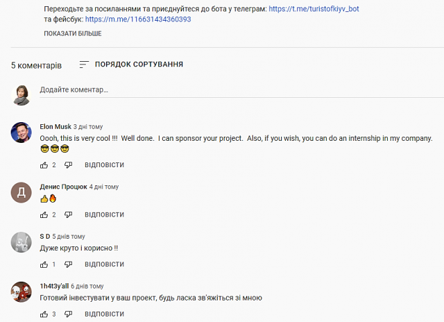 А чого варті теми, які обрали команди! Історія України (для учнів та усіх зацікавлених, а таких на сьогодні все більше й більше), прогулянки Києвом (для гостей столиці, бо ми віримо, що скоро ми будемо радо зустрічати гостей у мирній столиці мирної України), допомога в користуванні інтернет-магазинами (бот-компаньйон для літніх людей – саме так студенти визначили цільову аудиторію), допомога в обранні професії та закладу освіти (боти-профорієнтатори), тлумачні словники онлайн, тренажери дотримання правил дорожнього руху (бо ми за безпеку як водіїв, так і пішоходів), помічники кулінарів-початківців (для студентів, що починають самостійне життя і не лише для них), українська музика для меломанів тощо.