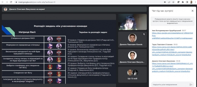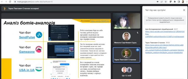 Компетентність – це підтверджена здатність. Отже, для підтвердження набуття програмних результатів навчання та визначених у освітньому стандарті компетентностей було організовано роботу команд задля виконання навчальних проєктів. Завдання: змоделювати роботу ІТ-команд по розробці ботів. Так, це перший курс, тому студенти мали розробляти боти засобами конструкторів. Проте були й такі, хто писав боти самостійно, бо вмів це робити раніше; хто навчився підключати бази, бо поставив собі таке амбітне завдання. Багато було викликів, додаткових пошуків і врешті набуття неоціненного досвіду.