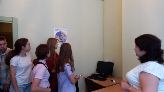 На кафедрі філософії та міжнародної комунікації абітурієнтів зустріли декан гуманітарно-педагогічного факультету Інна Савицька та завідувач Валентина Культенко. Вони зазначили, що гуманітарно-педагогічний факультет – один із найбільших факультетів НУБіП Укараїни, розповіли про переваги навчання в університеті, про спеціальність «Міжнародні відносини, суспільні комунікації та регіональні студії», особливості навчання за програмою подвійних дипломів в Поморський унфіверситет (Республіка Польща). Відтак старшокласників залучили до цікавих активностей.