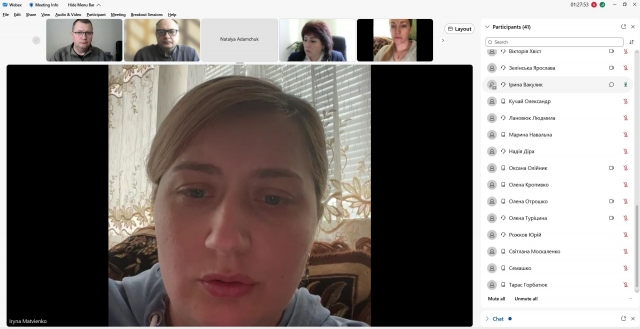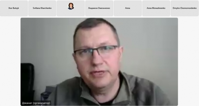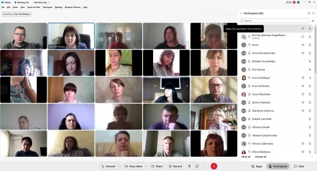В останній день березня на гуманітарно-педагогічному факультеті відбулося засідання наставників у дистанційному режимі. Декан факультету Інна Савицька розпочала захід з найважливіших питань: з’ясування інформації про місцеперебування студентів, які не виходять на зв'язок; відвідуваність занять, проведення проміжної атестації, особливості нарахування студентам додаткових балів за нові форми роботи в умовах воєнного стану, отримання довідок у деканаті тощо.