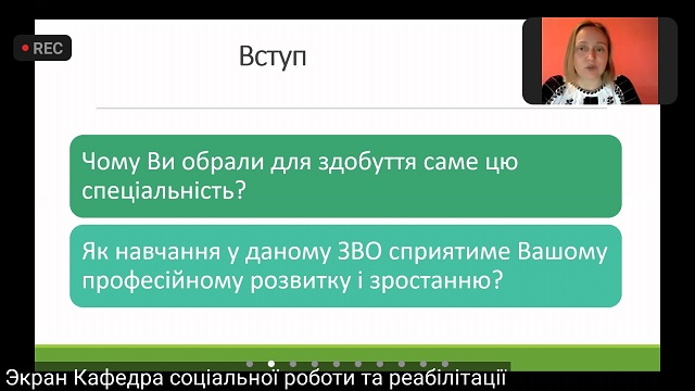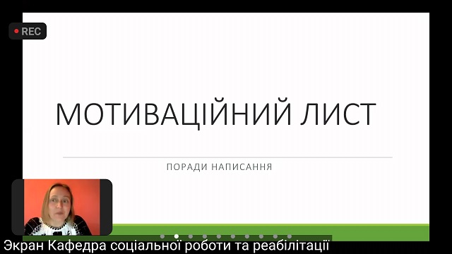 Родзинкою, або як зараз говорять, лайфхаком підготовленого кафедрою заходу стали реальні відповіді реальних людей на структурні частини мотиваційного листа. Аби це насправді вийшов майстер-клас, а не запропонований іншими вузами формат нудної лекції під назвою «тренінг» на півтори години, під час якої багато абітурієнтів просто виходять з онлайн-зустрічі, оскільки, очевидно, очікують чогось іншого, ніж повчання, де треба ставити коми, чим відрізняється назва освітньо-професійної програми від назви спеціальності, де шукати навчальний план та прізвище очільника закладу освіти та чи мають бути заголовними всі літери його прізвища, – команда викладачів кафедри соціальної роботи та реабілітації НУБіП України вирішила поставити себе на місце абітурієнтів і самим написати мотиваційного листа.