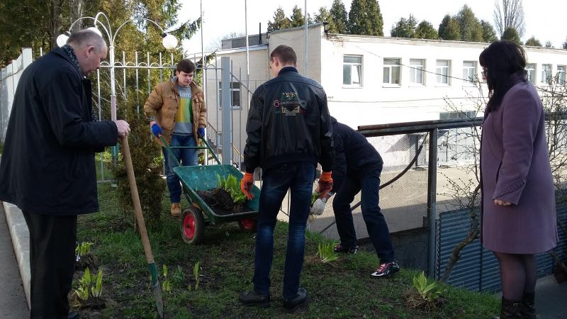 З ініціативи декана Василя Шинкарука понеділок 4 квітня на гуманітарно-педагогічному факультеті розпочався з упорядкування прилеглої до 15 корпусу території. У ньому взяли участь заступники декана Світлана Харченко, Ігор Буцик, Людмила Макодзей, викладачі та студенти.