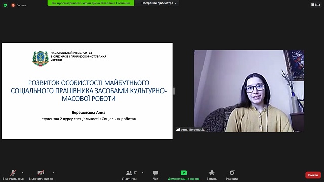 - «Розвиток особистості майбутнього соціального працівника засобами культурно-масової роботи» (студентка 2 курсу спеціальності «Соціальна робота» НУБіП України Анна Березовська);