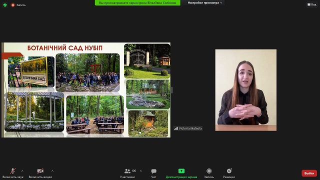 Зацікавила присутніх й доповідь здобувачки другого освітнього рівня, магістрантки з величезним списком перемог у студентських наукових конкурсах і олімпіадах Вікторії Мацоли, яка поділилась «рецептами» відновлення засобами природотерапії емоційного стану і загального самопочуття після covid. В цьому контексті Ірина Віталіївна запропонувала учасникам конференції переглянути віртуальний тур нещодавно відкритою для працівників та студентів НУБіП сенсорною кімнатою.