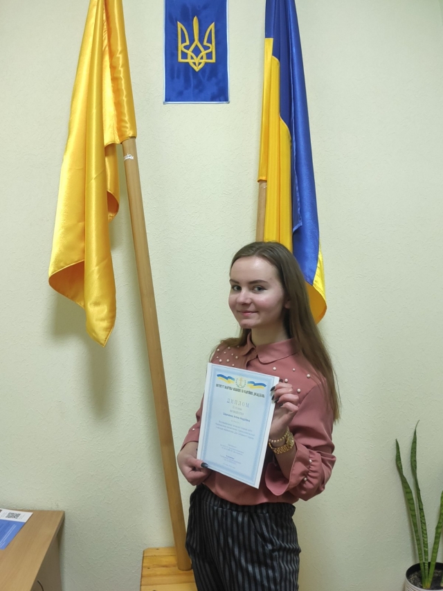 Аліна Шевченко, студентка І курсу спеціальності "Соціальна робота" гуманітарно-педагогічного факультету відзначена дипломом ІІІ ступеня у Всеукраїнському конкурсі "Національно-патріотичне становлення молоді", який ініційовано і проведено Інститутом політико-правових та релігійних досліджень за підтримки Міністерства молоді та спорту України, Національного агентства із забезпечення якості вищої освіти, Європейської культурної асамблеї та Київської міської державної адміністрації.
