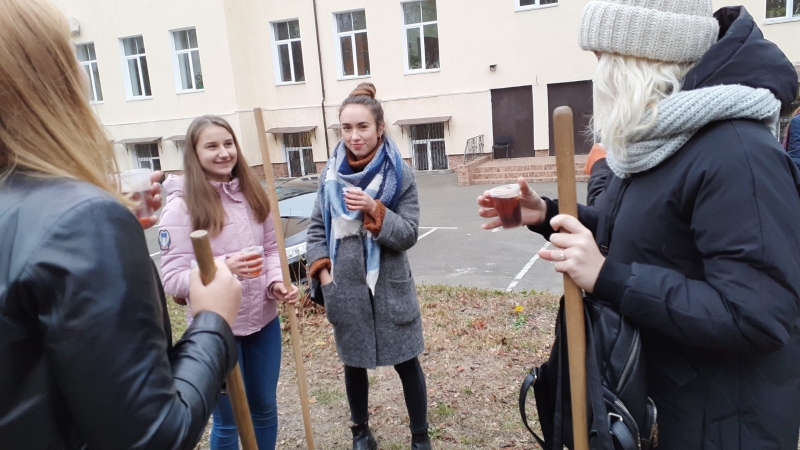 «Спілкуємося лише іноземною» – під таким гаслом пройшли неформальні зібрання студентів гуманітарно-педагогічного факультету у рамках традиційної осінньої толоки з прибирання прилеглої території навколо центрального навчального корпусу. Цей захід відбувся 31 жовтня за ініціативи студентської організації факультету, коли англомовна та німецькомовна студентські групи спеціальності «Філологія» об’єдналися для досягнення спільної та надважливої мети.