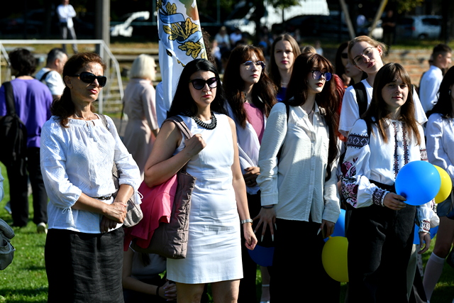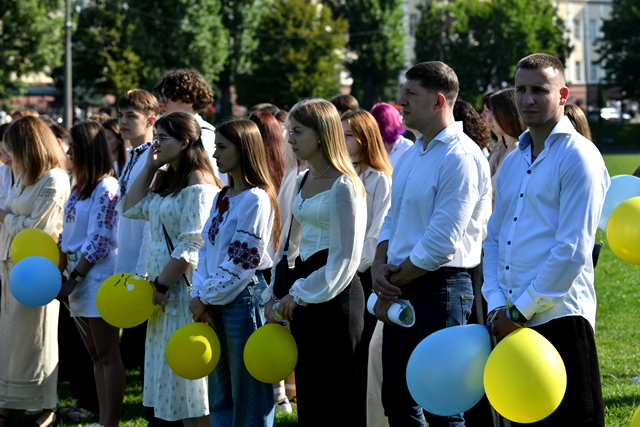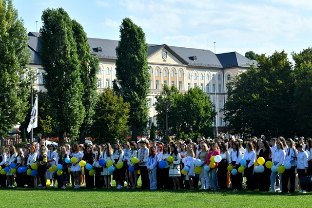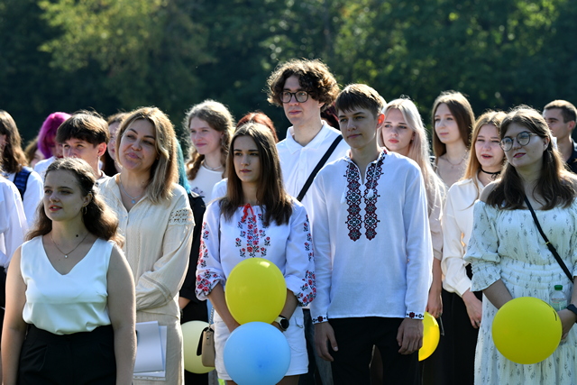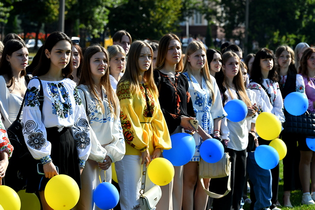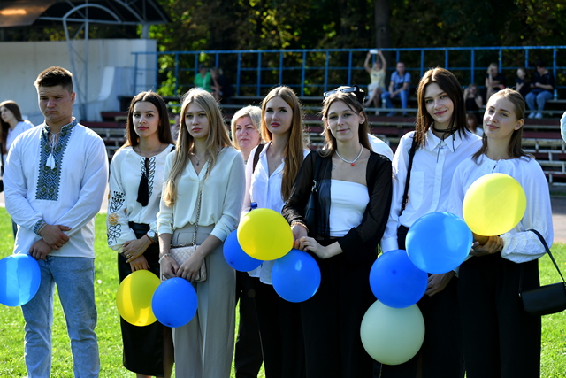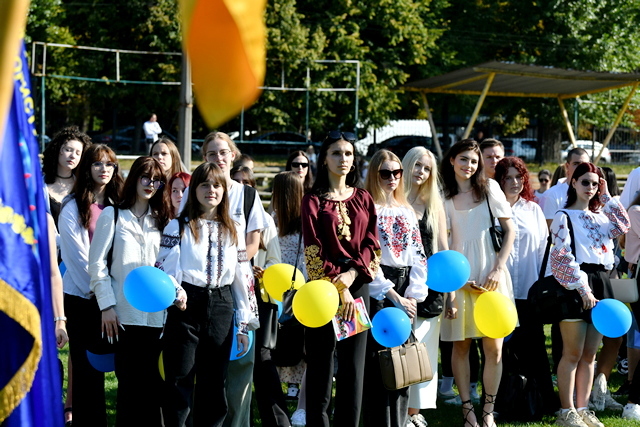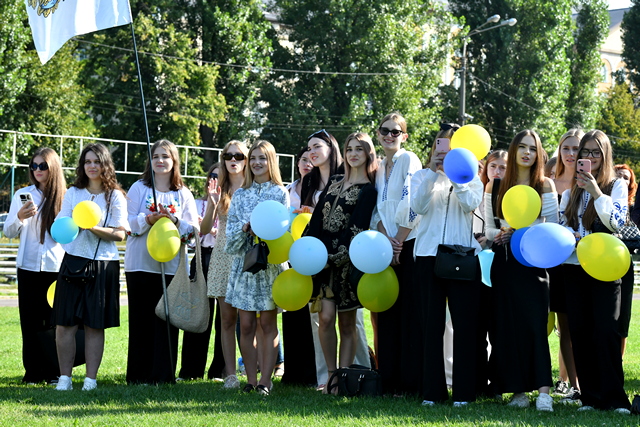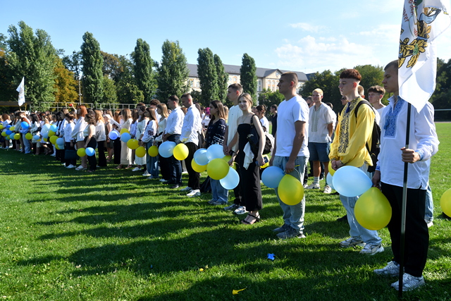 Ще зранку біля навчального корпусу №3 та на центральному стадіоні університету почали гуртуватися першокурсники – урочисто-стривожені, гомінкі, у вишиванках та з патріотичними кульками у руках. Поряд з ними – наставники груп, викладачі, батьки, гості.