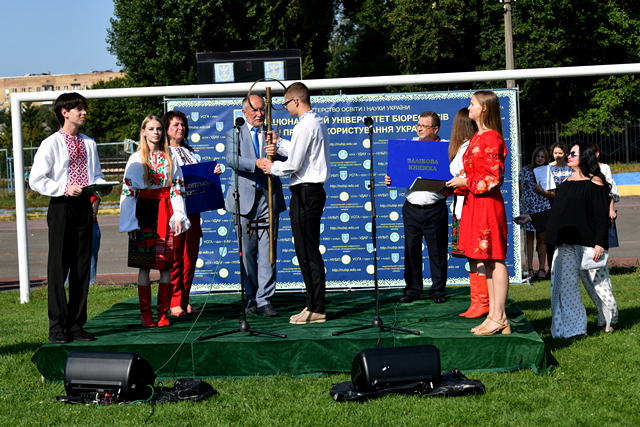 Свято не обійшлося без несподіванки, щоправда, приємної: на нього завітали випускник НУБіП Микола Кучерявий, який був директором гурту Kalush Orchestra, і український співак Козак Сіромаха, які також дали першокурсникам перші настанови.