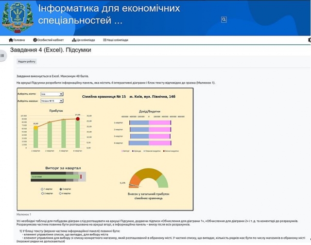 Відповідно до розпорядження декана факультету інформаційних технологій №4 від 12.02.2024 р. за проведення І етапу Всеукраїнської студентської олімпіади з Інформатики для економічних спеціальностей у 2024 відповідали науково-педагогічні працівники кафедри інформаційних систем і технологій: професор кафедри Олена КУЗЬМІНСЬКА та доценти Максим МОКРІЄВ, Євгеній СТАРИЧЕНКО й Михайло САДКО.