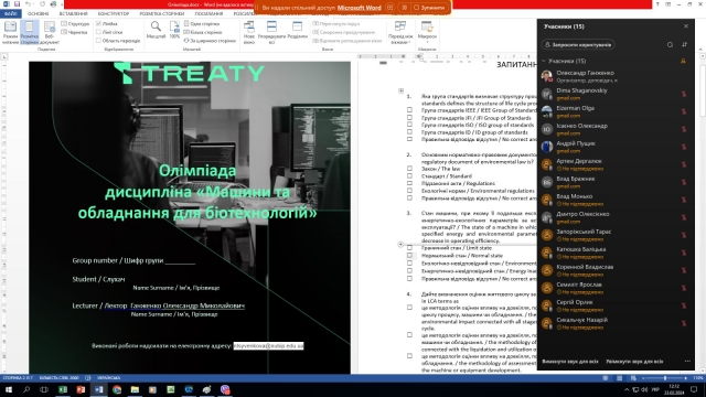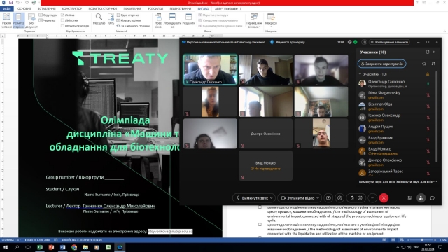 За результатами визначились переможці I етапу Всеукраїнської студентської олімпіади з навчальної дисципліни «Машини та обладнання біотехнологій»: