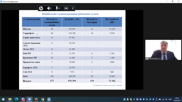 Іван Чернявський, кандидат економічних наук, заступник начальника ДУ «Держгідрографія», зосередився на актуальних питаннях логістичного забезпечення судноплавства та перевезення зерна р. Дніпро.
