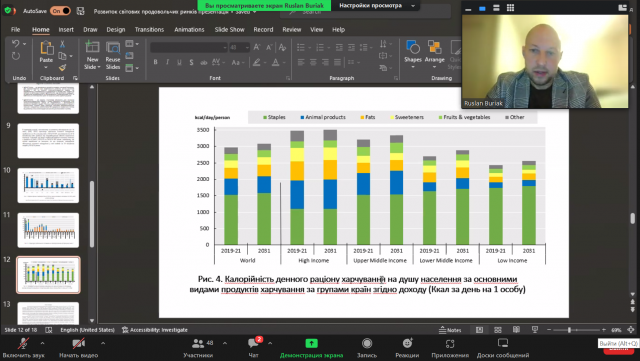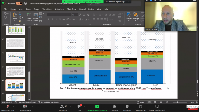 Доктор економічних наук, професор кафедри маркетингу та міжнародної торгівлі Руслан Іванович Буряк проаналізував світові продовольчі ринки, розкрив проблемні питання сьогодення та окреслив перспективи розвитку.